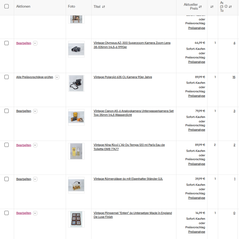 Wir spezialisieren uns nicht auf eine bestimmte Produktkategorie, sondern verkaufen diversifiziert von A wie Armbanduhr bis Z wie Züge. Es gibt einige Merkmale die jeweils die Verkaufschance verbessern können: